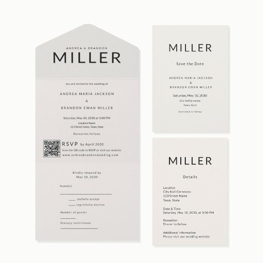 Esta tarjeta de agradecimiento de boda arquitectónica presenta un encabezado de apellido en negrita y un diseño minimalista refinado, diseñado como un anuncio modular posterior a la boda.