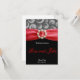 Tarjeta de boda de cinta de raso roja negra plateada elegante
