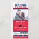Tarjeta de boda temática de hockey con entrada. LOS COLORES SON AZUL OSCURO Y ROJO. Agregue una foto en la parte delantera y dos fotos adicionales en la parte posterior con más información para agregar. Para consultas sobre cambios de diseño personalizados por el diseñador independiente, envíe un correo electrónico a paula@labellarue.com ANTES de personalizar o realizar un pedido.