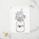 Las notas de amor manuscritas son una excelente manera de alegrar el día de alguien. Esta divertida tarjeta postal presenta un frasco de mason dibujado a mano que destaca el amor impreso en una fuente de corazón rojo con flores silvestres.