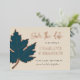 Tarjeta de boda de hoja de arce otoñal azul verdos