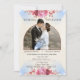 Celebre su unión sagrada con esta elegante invitación de boda cristiana que presenta diseños florales suaves de color rosa y una disposición delicada y romántica. Las rosas sonrosadas y la sutil vegetación enmarcan bellamente los detalles de su boda, creando una atmósfera llena de gracia y fe.