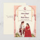 "Celebre una unión de tradiciones con esta impresionante invitación de boda inspirada en la India. Este diseño presenta intrincados patrones de Mandala y motivos de paisley que reflejan la rica herencia cultural del subcontinente. Situado en un fondo profundo y regio con acentos dorados brillantes, el diseño captura el espíritu festivo de una gran boda india. Con una mezcla de estética tradicional y lujo moderno, esta invitación es un majestuoso tributo a una historia de amor atemporal."
