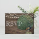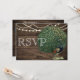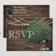 Tarjeta de Boda de Pluma de Pavo Real en Madera Rústica Turquesa