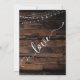 Tarjeta de boda pospuesta con luces de madera rúst