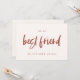 Una tarjeta de regalo simple y minimalista para escribir un mensaje personal y sincero para tu mejor amiga en su día de boda. Totalmente personalizable con tus colores favoritos. Puedes agregar un mensaje en la parte posterior, o dejarlo en blanco si prefieres escribir tu mensaje a mano más tarde.