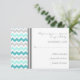 Tarjetas RSVP de casamiento con elegante y contemporáneo color gris, agua turquesa azul y blanco moderno zigzags chevron. Personalizable con los detalles de su boda, disponibles en muchos productos bodas que coinciden.