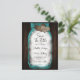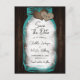 Tarjeta postal de bodas de Save the Date rústica en turquesa con un frasco de Mason con luces de cuerda y corazones de arpillera contra un fondo de madera de granero. Personalice fácilmente esta tarjeta postal de Save the Date en línea. Artículos coincidentes disponibles.