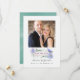Tarjetas de guardar la fecha de boda con flores de color rosa, púrpura y menta con marco geométrico dorado.