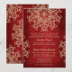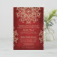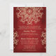 Una hermosa y profunda invitación de boda de color rojo rubí granate y dorado con un patrón exótico de medallón de sari inspirado en la India con un diseño floral y de loto. Esta elegante y hermosa invitación de boda de estilo indio moderno es perfecta también para una fiesta de compromiso o aniversario con un tema indio, marroquí, asiático oriental o indonesio. Diseñado por Chrissy H. Studios, LLC. Todos los derechos reservados.