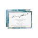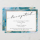 Si tus planes de boda han cambiado inevitablemente, esta llamativa tarjeta artística podría ser la opción única para ti. Con una fuente de caligrafía de lujo, el encabezado dice "el amor es paciente". El borde frontal y la parte posterior de la tarjeta están cubiertos con una pieza de mi "arte líquido" abstracto que presenta una técnica lograda mediante el uso de tintas "alcohol" teal acentuadas con dorado metálico. El estilo a veces se confunde con acuarela. Los detalles frontales también están compensados por un borde doble dorado que se superpone a un rectángulo blanco. Utilice los campos de plantilla para agregar sus datos personales. // 137 //