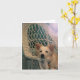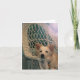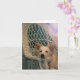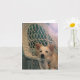 Esta tarjeta Australian Red Border Collie fue diseñada a partir de una fotografía de mi perro rescatado. Lo dejaron atrás en Loma Linda, Missouri, y durante un año dirigió un rebaño de ciervos hacia un gran estanque cada noche y luego vigilaba a su rebaño. Cuando mi esposo y yo rescatamos a Jerry, lo habían dejado por muerto al lado de la carretera. Un coyote lo había herido mientras este Border Collie intentaba proteger a su rebaño. En esta imagen, Jerry está descansando en una silla de rattán. Tiene 12 años.