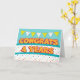 Esta es una tarjeta de empleado del cuarto aniversario, brillante y colorida, principalmente en blanco, turquesa y naranja. El diseño tiene un ambiente divertido, festivo e informal, e incluye un conjunto y un colorido patrón de triángulos contra el blanco. Diseño de NATALIE KINNEAR