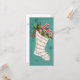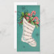 Una tarjeta de felicitación vintage de Merry Christmas y Feliz Año Nuevo con un calcetín adornado con bastones de caramelo, caramelos de menta y acebo, sobre un fondo azul turquesa. Personalice la parte posterior con su saludo.