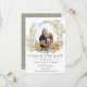 Nuestra colección de magia forestal presenta un suave follaje en colores verdes apagados con toques de color malva polvoriento. Esta tarjeta de cambio de fecha tiene una corona cuadrada que encierra tu foto personalizada y la combina con una tipografía sans serif para toda la información. Una hermosa elección para una boda inspirada en la naturaleza durante todo el año.