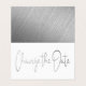 Tarjetas de Cambio de Fecha con Letra de Caja Alta y Hoja de Plata Modernas de The Business Card Store.
