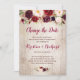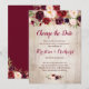 Tarjeta de cambio de fecha de floral rojo burdeos