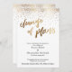 Si necesitas notificar a tu tribu una fecha de boda actualizada, este diseño festivo podría ser justo la pieza que estás buscando. En este diseño, se utilizó la fuente de letra a mano para crear un gráfico que dice "cambio de planes", grande y en negrita; la imagen ha sido adornada con un efecto dorado metálico falso. La parte superior de ambos lados ha sido acentuada con una imagen que simula confeti dorado que parece caer desde arriba. Utiliza los campos de la plantilla para agregar tus detalles personales y hacer que este diseño moderno y único sea tuyo. El fondo se puede cambiar a cualquier color que prefieras. // 100 //