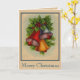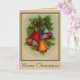 Esta tarjeta de Navidad tiene campanas de Navidad muy brillantes y coloridas con acebo y bayas. Un toque de nieve hace que esta sea una tarjeta festiva de vacaciones.
