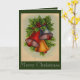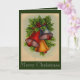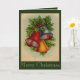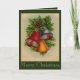 Esta tarjeta de Navidad tiene campanas de Navidad muy brillantes y coloridas con acebo y bayas. Un rociado de nieve hace que esta sea una tarjeta festiva de vacaciones.