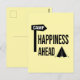 Diseño gráfico de texto simple mostrando una pequeña tienda de campaña un cartel de campamento y un texto que dice: Felicidad por delante.