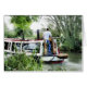 Diseño artístico de un hombre que conduce su bote estrecho a lo largo del canal. Los barcos del canal, conocidos en el Reino Unido como barcos estrechos, se utilizaron originalmente para transportar mercancías por todo el país. Ahora se utilizan principalmente para el ocio y atraen a personas de todo el mundo para disfrutar de nuestro campo rural. Estos barcos parecen muy bonitos con sus camarotes de colores vivos, azules, rojos o verdes. Flores y diseños de castillo también adornan los barcos más tradicionales.