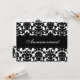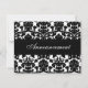 Si necesita recordar sus invitaciones para cancelar o cambiar su boda, esta pequeña y elegante tarjeta plana de damasco blanco y negro sería una forma adecuada de informar a sus invitados. Si prefiere otro color, envíe su solicitud a niteowlstudio@gmail.com.