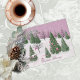 Esta es una tarjeta muy especial con un toque elegante y victoriano. Un bosque de árboles decorados misteriosamente para Navidad. Cintas y bombillas están volando en el viento (una incluso se ha caído en la nieve). El papel de aluminio da un marco con aspecto de encaje-paisley un brillo. Es una tarjeta encantadora con un sentimiento nostálgico especial. ¡Disfruta de tu temporada navideña!