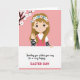 Este diseño muestra a una joven animada estilizada centrada en un fondo rosa suave, sonriendo con una expresión abierta y acogedora que se siente como un saludo amistoso. Ella levanta una mano en una suave ola, y su mirada directa añade un toque de cercanía, como si estuviera saludando a alguien especial. Una suave corona de flores descansa en su largo cabello castaño, mezclando pequeñas flores blancas, rosa pálido y azul claro para un aspecto primaveral 🌷. Ella está detrás de un amplio banner blanco que se extiende por la mitad inferior, dando al diseño una base tranquila y equilibrada. Su top es rosa brillante sobre una capa blanca, y sus mangas presentan rayas negras y blancas que añaden un toque moderno sin sobrecargar la escena. En la esquina superior izquierda, una rama delgada con diminutas flores blancas se inclina hacia adentro, enmarcando su rostro como un ramo silencioso 🐰. El mensaje se sitúa centrado en el banner, con la mayoría de las palabras en un