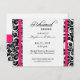 Tarjeta de cena de Damask Swirl en rosa caliente