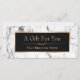 Tarjeta de certificado de regalo de aspecto mármol blanco de moda.