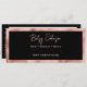 Este certificado de regalo de moda presenta un fondo negro con un borde falso de Relieve metalizado de oro rosa
