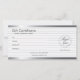 Certificado de regalo de logotipo moderno con estos lujosos copos de nieve de plata brillan y plata sobre fondo blanco,