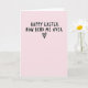 Esta tarjeta presenta un fondo suave de color rosa pastel con un saludo de vacaciones descarado en letras negras gruesas y casuales en la zona media superior. El texto parece ligeramente irregular, como si alguien cercano a ti lo hubiera escrito rápidamente, lo que le da un tono íntimo y conspirador. El mensaje está centrado con un generoso espacio abierto alrededor, permitiendo que las palabras hagan la mayor parte del trabajo sin decoraciones adicionales. Justo debajo de la letra, un pequeño contorno de corazón en negro añade una suave señal romántica, como un guiño silencioso entre parejas o amigos cercanos. El dulce fondo rosado contrasta con la línea más atrevida, creando un tira y afloja coqueto que se siente a la vez afectuoso y burlón. Un pequeño detalle 🌷 puede imaginarse fácilmente junto a la paleta de colores suaves, reforzando el entorno estacional sin abarrotar el diseño. El símbolo del corazón descansa debajo de la línea principal, centrado en el campo rosa, dibujado como