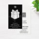 La plantilla de la tarjeta de cheques de regalo para pequeñas empresas en blanco y negro es una potente herramienta de marketing para generar fidelidad al cliente. ・ Detalles clave: ・ Formato: Retrato, con un tema blanco y negro elegante. ・ Parte delantera: ・ Parte superior: logotipo de la empresa. ・ Centro: presente con una cinta. ・ Inferior: Título de promoción, "Servicio XYZ", con "Cheque de regalo" debajo de los términos. ・ De vuelta en un fondo blanco: ・ Media superior: código QR con CTA para "Buscar especialidades!", identificación de seguimiento ・ En el centro hay una invitación para seguir en los medios sociales. ・ La mitad inferior: El nombre de la empresa, la dirección física y los datos de contacto virtuales. Cualquier marcador de posición de texto que quede vacío desaparecerá. Para más ideas de marca, visita www.KBMD3signs.com. Para obtener ayuda sobre personalización y transferencia de diseño, póngase en contacto con info@KBMD3signs.com. #ZazzleMade #BuildingCustomerLoyalty #SmallBusinessMarketing #HolidayVoucherCard #KBMD3signs
