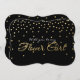 Tarjeta de chica de Relieve metalizado dorado negro con FLORES de confetti