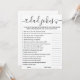¡Que comiencen los juegos de juego de palabras! Esta plantilla editable de temática minimalista incluye 17 preguntas ingeniosas de personalizable e inducidas a las risas, que seguramente harán que sus huéspedes se sientan en puntos. Puede dejar las preguntas de la plantilla tal como están, y consultar la clave de respuesta en las imágenes del producto (si necesita las respuestas en forma textual, por favor contáctame, y me complacerá proporcionarlas). Alternativamente, puede personalizar las preguntas para que coincidan con el tema de su celebración. Cada aspecto de la plantilla es personalizable, desde estilos de texto y colores hasta tamaños. Si necesita ayuda o desea encontrar artículos a juego, por favor no dude en contactarme.