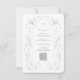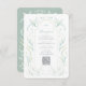 Tarjeta de inscripción de la recepción de bodas con un marco de ramas elegantes con hojas azules verdes. Hojas delicadas abstractas dibujadas a mano sobre fondo blanco. Fondo romántico de naturaleza floral. Resumen de las ramas foliares de la naturaleza. Diseño floral de primavera o verano vintage. Parcela botánica. Bodega verde suave Tarjeta de Alojamiento de la Recepción de Bodas. Colección de hojas verdes.