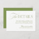Esta elegante tarjeta de recinto para bodas cuenta con un verde sabio suave, emparejado con tipografía serif intemporal y delicados acentos de escritura. Perfecto para compartir con sus huéspedes el sitio web de su boda, las instrucciones de RSVP, los detalles de viaje o la información de alojamiento. Personalizable completo: simplemente actualice el texto para adaptarlo a sus necesidades. Parte de la colección de Bodas de Iris: haga clic en el vínculo de colección de esta página para explorar la coordinación de invitaciones, menús, carteles y más.