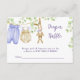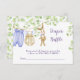 Tarjeta de alojamiento Diaper Raffle para la ducha de bebé, decorado con hermosos ilustraciones acuarelas de ropa de bebé adorable colgando de una línea a un conejo seco y adorable relleno, rodeado de delicadas ramas con hojas verde claro.