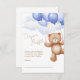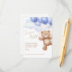 Tarjeta de clausura de pañal Raffle para una ducha de bebé decorada con un adorable oso oso de peluche montando globos en las nubes.