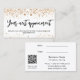 Fondo blanco decorado con finos purpurinas dorados, chispas. Texto negro. Atrás: Personaliza y agrega tu nombre de negocio, número de teléfono, correo, dirección de sitio web, código qr a tu sitio web o cuenta de medios sociales.