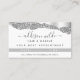Tarjeta de cita Glam Diamonds Brillo de Plata. Diseño profesional de caligrafía con estilo de letra a mano con brillo de plata elegante. Perfecto para artistas de maquillaje, estilistas de cabello, cosmetólogos y más.