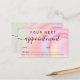 Tarjeta de cita holográfica de mármol unicornio de arcoiris rosa de maquillaje.