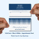Blue and White Modern Combo Thank You & Appointment Card — Show your appreciation and provide an appointment reminder and options for rescheduling appointments. It features on the front a decorative blue and white half tone pattern, personalized service information, and a phone number and email for rescheduling and noting the date and time of the next scheduled appointment. It's ideal for service provider start ups, with the logo yet to come, while leaving a lasting impression. It is fully editable.