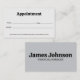Use our vintage-inspired appointment card to plan your next visit in style. Your name is prominently presented in a bold and ornamental font on this business card, which is set against an eye-catching black color scheme and silver retro bold serif. There is plenty of room to put the appointment date and time on the back thanks to its clear, readable layout. It's the ideal method to guarantee that your customers prioritize their upcoming reservation.