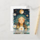 Cosmic Girl Boho Moon salon appointment card, featuring a mystical moon-goddess illustration in deep cosmic blues and warm gold tones. Perfect for tarot and aura readers, energy healers, yoga and reiki studios, shamans, spiritual coaches, massage and self-care practitioners, or any feminine-focused beauty or wellness service.