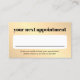 Elegant fully customizable appointment card template, perfect for beauty salon. Design with faux golden background, bold fonts.