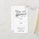 Elegante tarjeta de cita con un bello guión rápido. Añadir información de contacto y nombre de negocio en negro contra un fondo blanco.