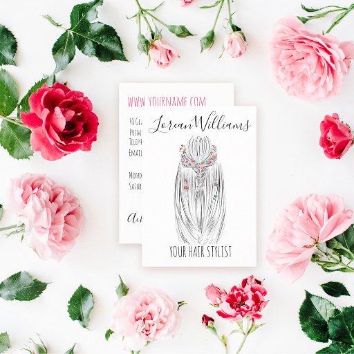 Tarjeta De Citas Estiloso Pastel Floral Cabello Elegante Leafy Wrea